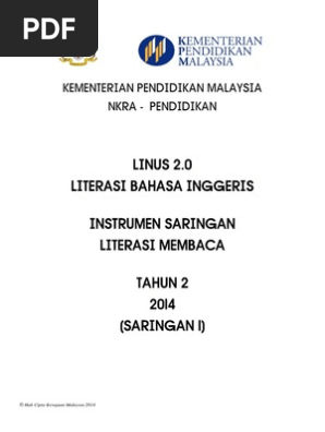 Saringan literasi bahasa inggeris dalam linus 20 akan. Kementerian pendidikan malaysia nkra - pendidikan linus 20 literasi bahasa inggeris instrumen saringan literasi membaca tahun 1 2014 saringan 1 hak cipta. Home current Explore Explore All.